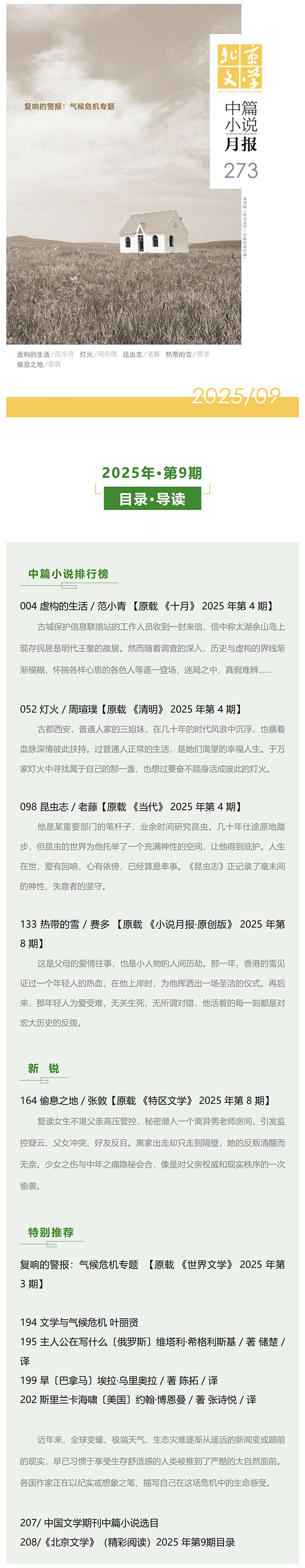 新刊速览|范小青《虚构的生活》看记忆、历史与虚构的交织 《北京文学·中篇小说月报》2025年第9期精彩导读