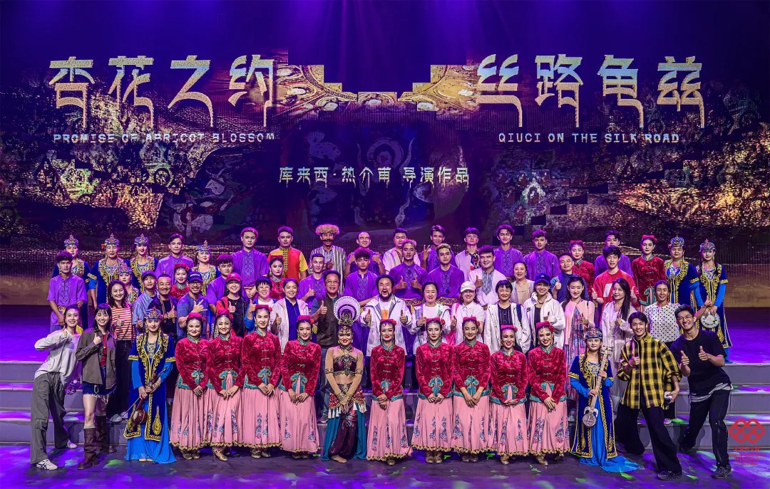 采风团与《杏花之约·丝路龟兹》主题演出演员合影