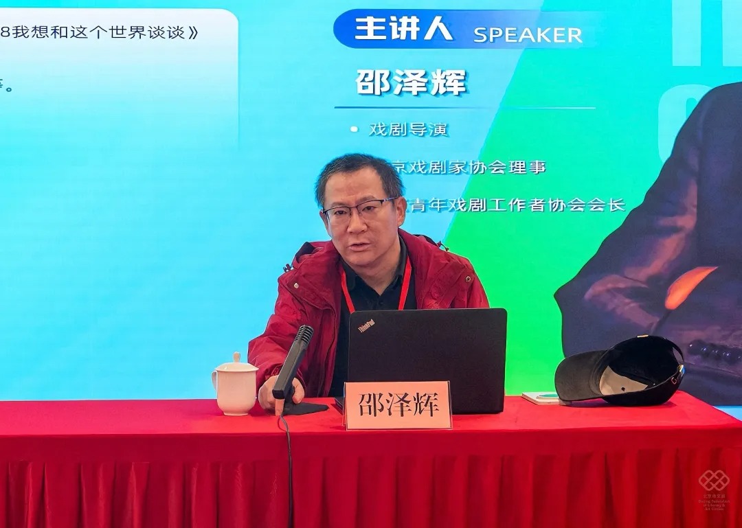 北京剧协理事、北京青年戏剧工作者协会会长、戏剧导演邵泽辉以《时代转型时期的戏剧创作思路探讨》为首讲,从观演关系的深刻转变切入,指出创作者要挖掘“新的问题、新的话题、新的主题”,为学员们呈现了新时代戏剧创作的生存之道与哲学思考。