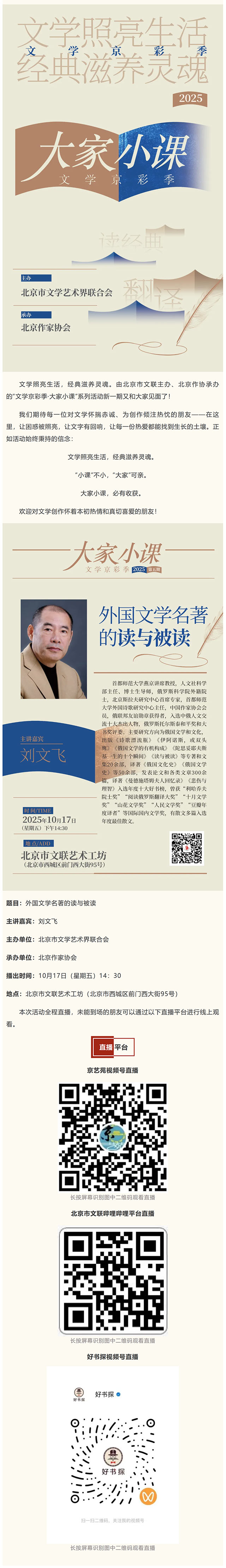 直播预告|大家小课第5期:刘文飞谈外国文学名著的读与被读