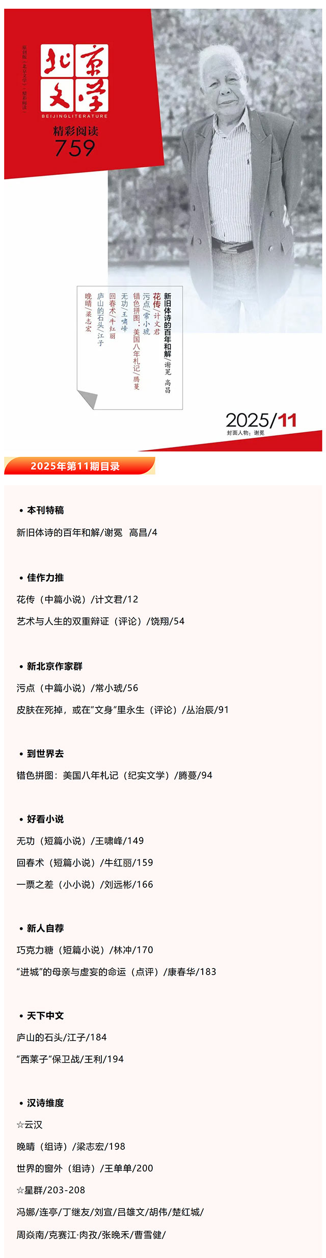 新刊速览|探讨《新旧体诗的百年和解》 《北京文学》2025年第11期精彩导读