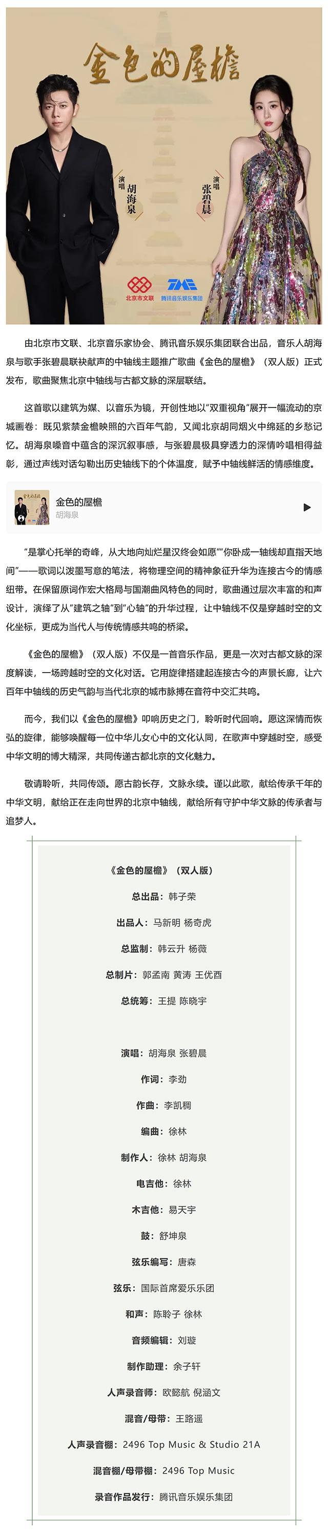 金檐映中轴,双声诉千年!北京中轴线主题推广曲《金色的屋檐》(双人版)上线