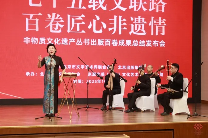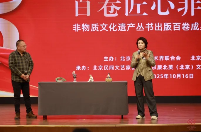 10月16日,由北京市文联、北京出版集团主办,北京民间文艺家协会、京版北美(北京)文化艺术传媒有限公司共同承办的“七十五载文联路·百卷匠心非遗情”非物质文化遗产丛书出版百卷成果总结发布会在北京举行。