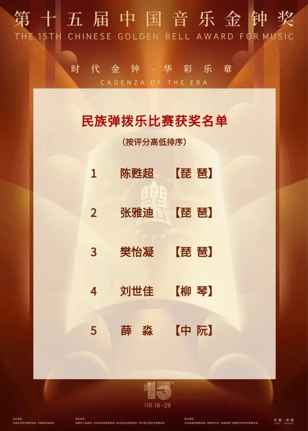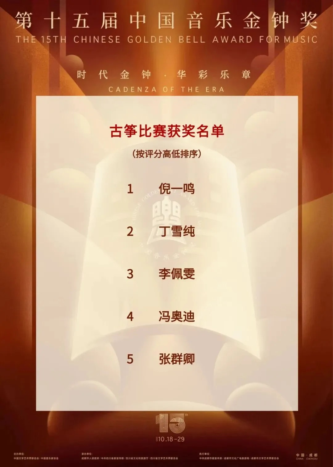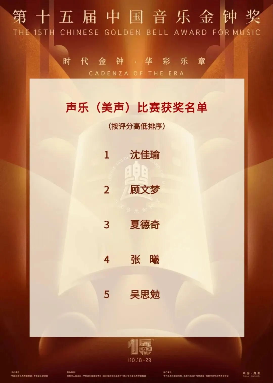 中国音乐金钟奖是全国唯一常设的音乐综合性大奖,由中共中央宣传部批准设立,由中国文联、中国音协联合主办。本届金钟奖以“时代金钟·华彩乐章”为主题,共声乐(民族)、声乐(美声)、古筝、钢琴、民族弹拨乐、管乐(铜管)六项表演类比赛。