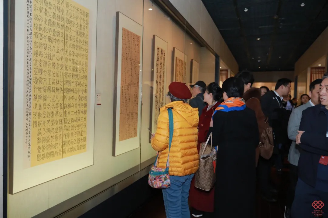 教育部中国书法教育指导委员会主任委员丁向阳,中国书协分党组成员、副秘书长张潇羽,市文联党组书记、常务副主席马新明,北京市文物局党组成员、副局长、北京中轴线申遗保护工作办公室专职副主任褚建好,北京书协主席叶培贵,首都博物馆党委副书记彭艺,北京书协副主席丁嘉耕、王立志、龙开胜、刘建丰、刘俊京、刘楣洪、郭孟祥、虞晓勇、窦志强,艺术顾问张世俊、段志华、李松等特邀嘉宾,入展作者、书法爱好者200余人参加开幕式。